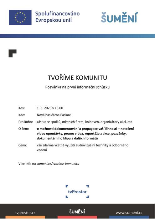 Dne 1. března 2023 se uskutečnila první informační schůzka zájemců o komunitní dokumentární filmovou tvorbu.