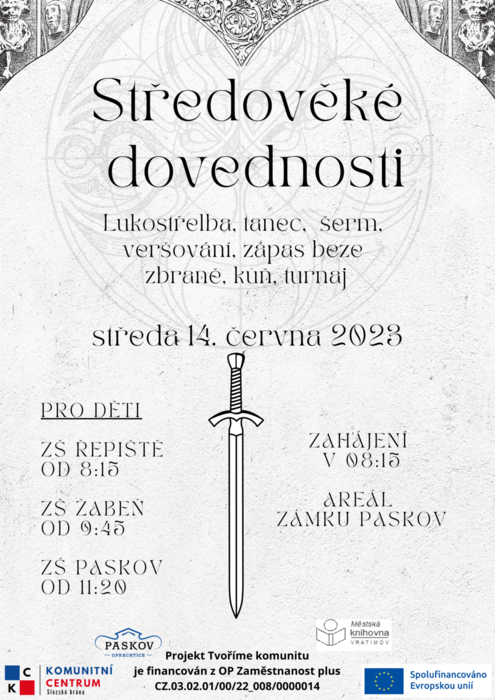 Akce přispěla k rozvoji řady kompetencí žáků ZŠ, podpořila jejich zájem o historii i sounáležitost s regionem Slezské brány Akce byla primárně určena dětem prvního stupně základních škol. Na sedmi stanovištích si děti vyzkoušely sedm rytířských Akce se konala v krásném prostředí a za příznivého počasí v areálu zámeckého parku Paskov. Celkem se zúčastnilo 218 žáků, 14 učitelů a akci připravil komunitní pracovník ve spolupráci s šesti knihovníky a 5 lektory |