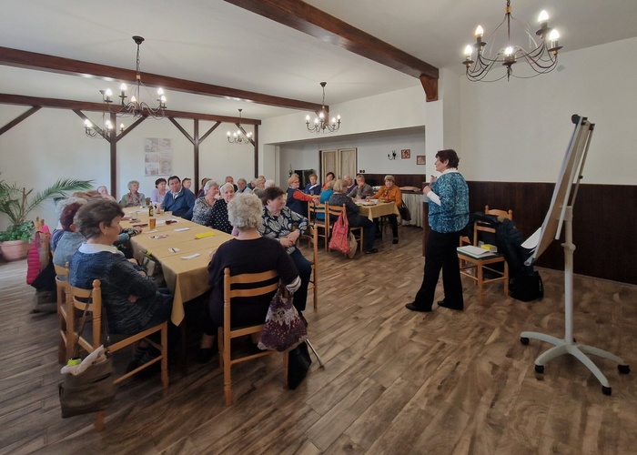 Dne 17. 4. 2024 se ve společenské místnosti Restaurace Lašská jizba v Sedlištích uskutečnil workshop na téma trénování paměti pro zdejší seniorský klub. Lektorka, Celkem se akce účastnilo dle prezenční listiny (mimo organizátora a lektora) 33 seniorů. Aktivně se na ni podíleli dobrovolníci z řad „domácího“ seniorského klubu v Sedlištích, především jeho předseda Jaromír Haleš. |
